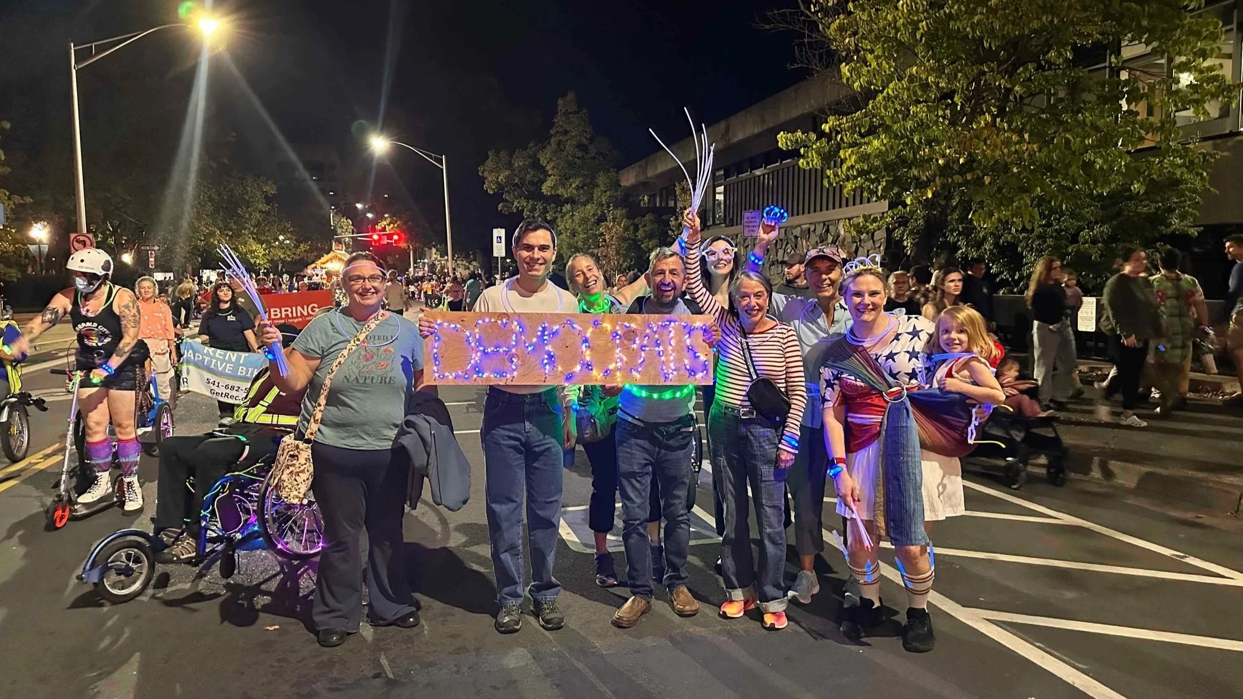 The DPLC Community Action Team walking in the City of Eugene’s BRiGHT Parade